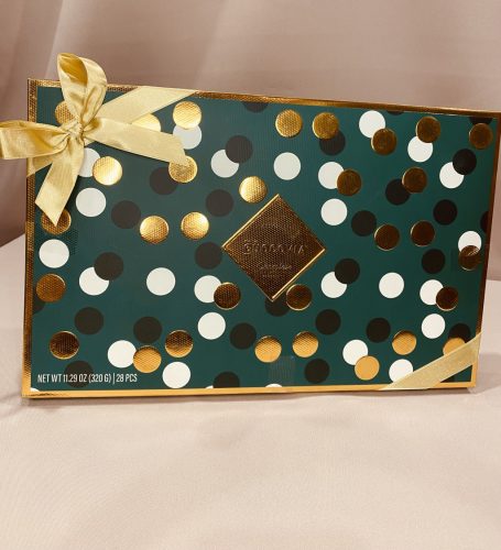 Összetevők: tejcsokoládé (cukor, kakaóvaj, kakaómassza, teljes tejpor, sovány tejpor, emulgeálószer: napraforgó lecitin; mesterséges aroma: vanilin), étcsokoládé (cukor, kakaóvaj, kakaómassza, kakaópor, emulgeálószer: napraforgó lecitin; mesterséges aroma: vanilin), fehér csokoládé (cukor, kakaóvaj, teljes tejpor, sovány tejpor, emulgeálószer: napraforgó lecitin; mesterséges aroma: vanilin). Töletelék: tejkrém töltelék (cukor, növényi zsír (hidrogénezett pálmamag olaj), teljes tejpor, savópor (tej), kakaópor, emulgeálószer (napraforgó lecitin), só, mesterséges aroma: vanilin), mogyorókrém töltelék (cukor, növényi zsír (hidrogénezett pálmamag olaj), mogyoró, kakaópor, savópor (tej), teljes tejpor, emulgeálószer: napraforgó lecitin; só, mesterséges aroma: vanilin), földimogyoróvaj krém (földimogyoró, cukor, növényi zsír (hidrogénezett pálmamag olaj), teljes tejpor, savópor (tej), sovány tejpor, emulgeálószer: napraforgó lecitin; só, mesterséges aroma: vanilin), pisztáciakrém töltelék (cukor, növényi zsír (hidrogénezett pálmamag olaj), pisztácia, kakaópor, savópor (tej), teljes tejpor, emulgeálószer: napraforgó lecitin; só, mesterséges aroma: vanilin), málnás töltelék (cukor, fagyasztott málna, pektin, maltodextrin, savanyúságot szabályozó szer: citromsav), mogyoró (5%), mandula (5%). Kakaó szárazanyag tartalom a tejcsokoládéban min. 33%, az étcsokoládéban min. 55%. Nyomokban glutént (búza) tartalmazhat.